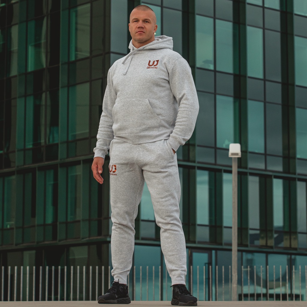 Drawstring adjustable sweatpants for both men and women. Gold UJ logo on the front left thigh.